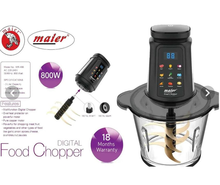نمایش تمام مشخصات مشخصات کلی برند مایر رنگ کالا استیل کشور سازنده چین نوع خردکن برقی نحوه عملکرد دکمه فشاری ظرفیت ظرف 3 تعداد تیغه 8 عدد جنس تیغه ها استیل ضدزنگ با روکش تیتانیوم شامل ظروف کاسه سیستم ایمنی سیستم قفل ایمنی جنس ظرف پیرکس جنس بدنه پیرکس قابلیت ها عملکرد دکمه فشاری امکانات آماده سازی غذا خردکن عملکرد عملکرد لحظهای (Pulse) ویژگی های نظافتی قابلیت نظافت آسان طول سیم 1 توان (وات) 800 مدل خرد کن مایر مدل MR-495