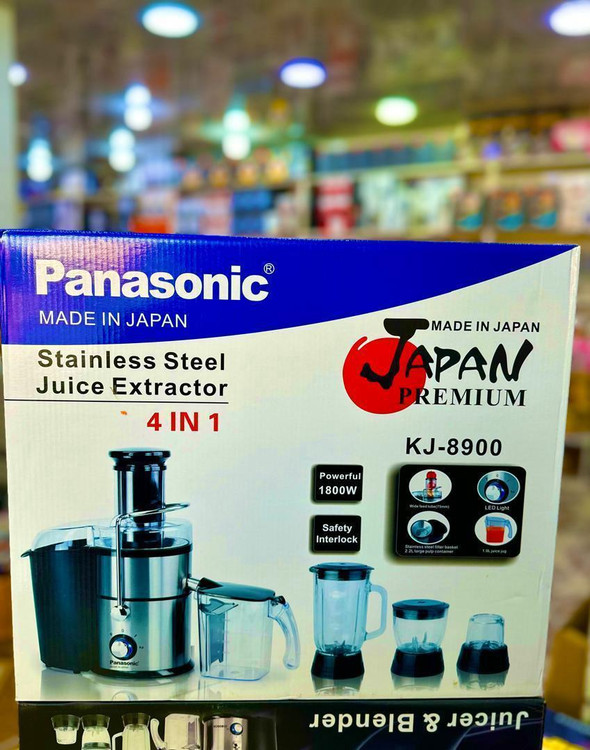 مشخصات کلی برند پاناسونیک Panasonic مدل Kj-8900 کشور مبدا برند ژاپن نمایشگر دیجیتالی خیر ابعاد طول 320، عرض 230و ارتفاع 385 میلیمتر وزن ۵ کیلوگرم نوع آبمیوه گیری برقی مخزن آب میوه گیری دارد گنجایش مخزن آب میوه گیری 1 لیتر مخلوط کن دارد ظرفیت پارچ مخلوط کن 1/6 لیتر جنس پارچ مخلوط کن شیشه آسیاب دارد مخزن تفاله دارد حجم مخزن تفاله 2 لیتر جنس تیغه (صافی) استیل ضد زنگ تنظیمات سرعت دارد تعداد حالت تنظیم سرعت 5 حالت عملکرد پالس دارد سیستم ضد چکه دارد سوئیچ ایمنی دارد پایه ضد لغزش